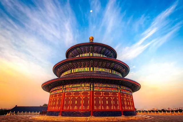 這幅作品將兩個(gè)屋檐和祈年殿的頂部構(gòu)成了完美對(duì)稱。