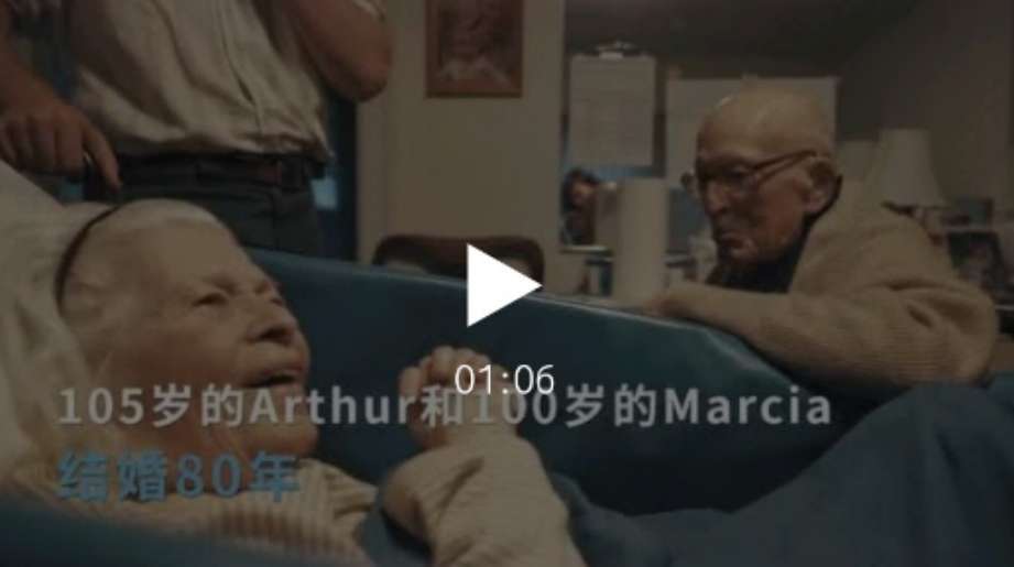 105歲的爺爺Arthur坐在病床前,握著100歲的奶奶Marcia的手,輕聲地說(shuō)著:“我愛(ài)你”。
