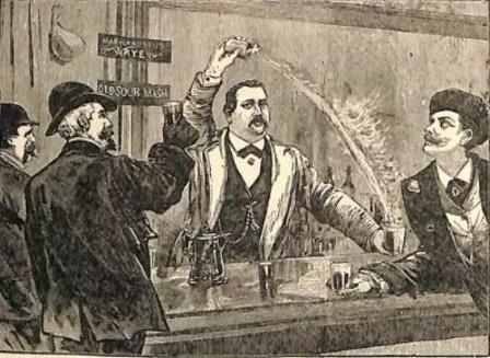 杰瑞·托馬斯的調(diào)酒生涯開(kāi)始于耶魯大學(xué)的所在地,紐黑文。這或許是他被人戲稱(chēng)為“教授”的原因之一。反正隨著淘金熱的到來(lái),杰瑞·托馬斯遠(yuǎn)赴舊金山,干的都不是什么體面事。他既在酒吧調(diào)酒,又下礦井采礦,甚至還身兼吟游詩(shī)人秀場(chǎng)經(jīng)理…