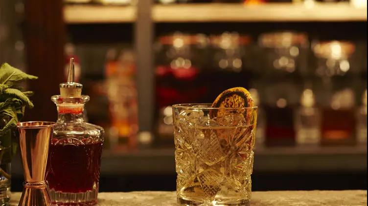 燈光昏暗的地下室酒吧,配有深色調(diào)的家具,配上一杯好喝的雞尾酒,別有一番情調(diào)。