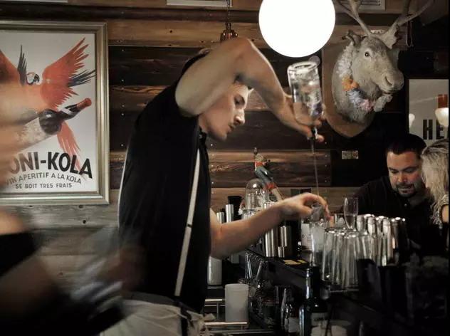 入口處有一個陡峭的樓梯和極低的天花板,小心不要碰到頭部喲。木質(zhì)的裝修風格,有著厚重古樸的時代感。調(diào)酒師的技藝高超,有時他們一人同時管理著幾個單子,卻絲毫沒有出差錯。酒的名字特別新奇,看到就讓人好奇它的味道,忍不住想要嘗試一下。
