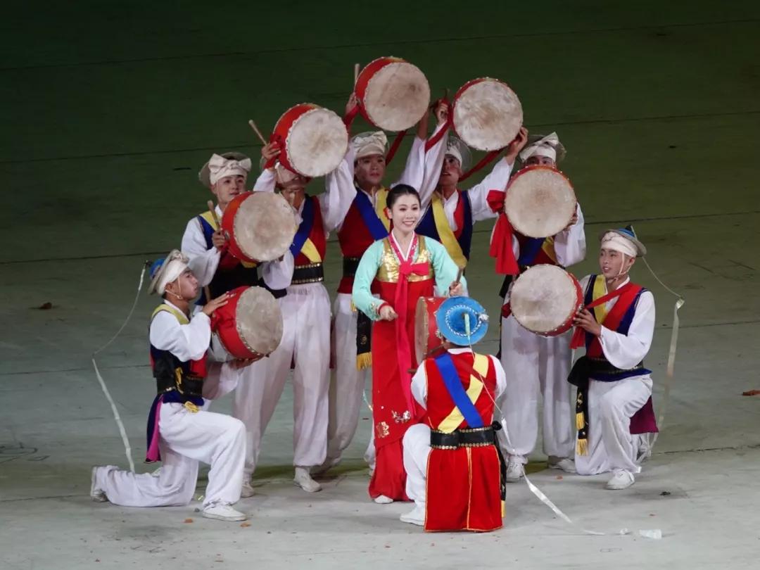 2012年,《阿里郎》推出十周年紀念版,有近一半內(nèi)容得到了創(chuàng)新和改進。新版《阿里郎》以時間線索貫穿民族歷史,從悲愴日帝殖民,到“先軍” “幸福” “統(tǒng)一”阿里郎,再到“友誼”和“強盛復興”阿里郎。