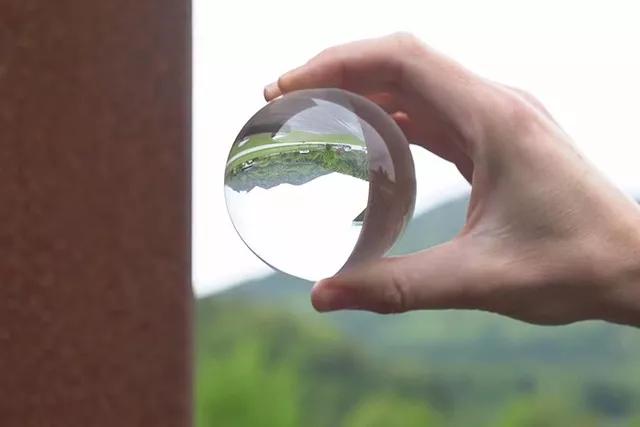 不斷調(diào)整拍攝角度和球體位置,你會(huì)發(fā)現(xiàn)球內(nèi)的分界線位置也會(huì)不斷發(fā)生變化。你需要選擇一個(gè)角度,使球體倒影和現(xiàn)實(shí)中的分界線重合。