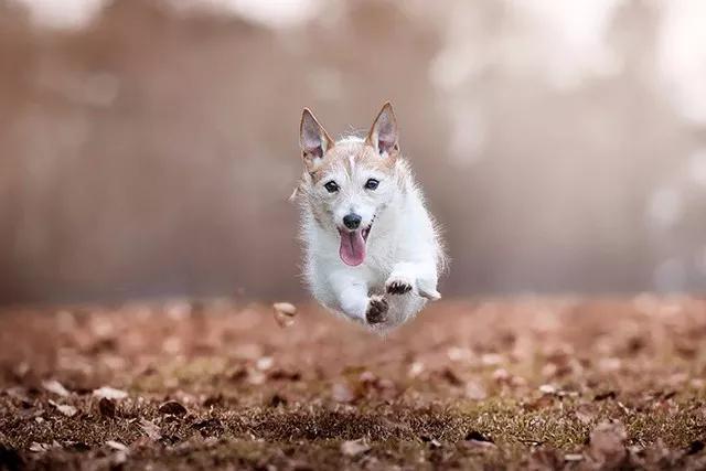 狗狗在跑步或跳躍時,會增大體力消耗,這可能會讓它們很快趕到疲倦——體現(xiàn)在攝影方面,那就是動作幅度降低,神情無精打采。要想拍出最棒的照片,你必須抓住它們剛開始運動,精力充沛的階段。
