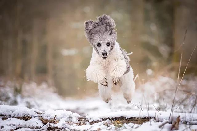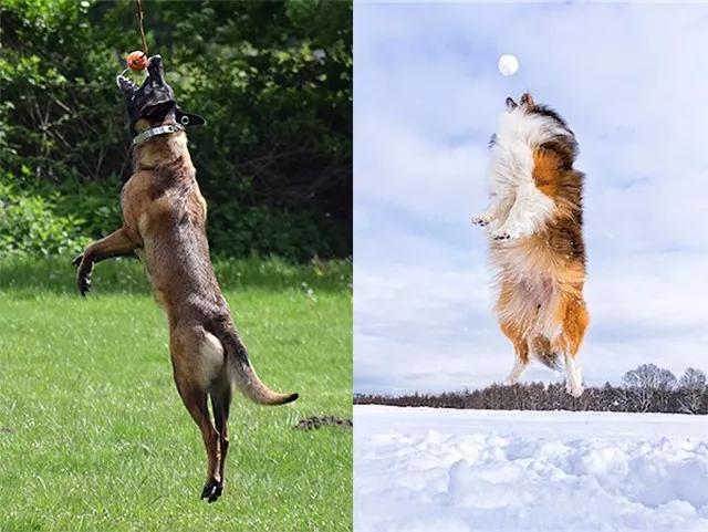 與跑步相比,這一題材相對簡單,只需要狗主人/助手配合,發(fā)出讓狗狗跳起的指令就行——拿著玩具,樹枝,食物都可以。