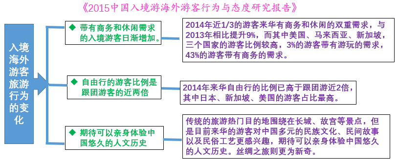 境外游客從本地入境,既要在本地旅游,又要到外省旅游,這個時候我們?yōu)槠湓O(shè)計(jì)的旅游產(chǎn)品既有本省旅游產(chǎn)品,又有外省旅游產(chǎn)品。