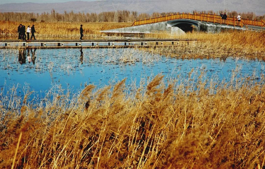 黑河諸水系在流經(jīng)張掖時(shí),形成了大面積的河流、湖泊和沼澤,河流兩岸形成了帶狀的蘆葦濕地、紅柳灌叢濕地,所以這里生機(jī)勃勃,群鳥嬉戲。