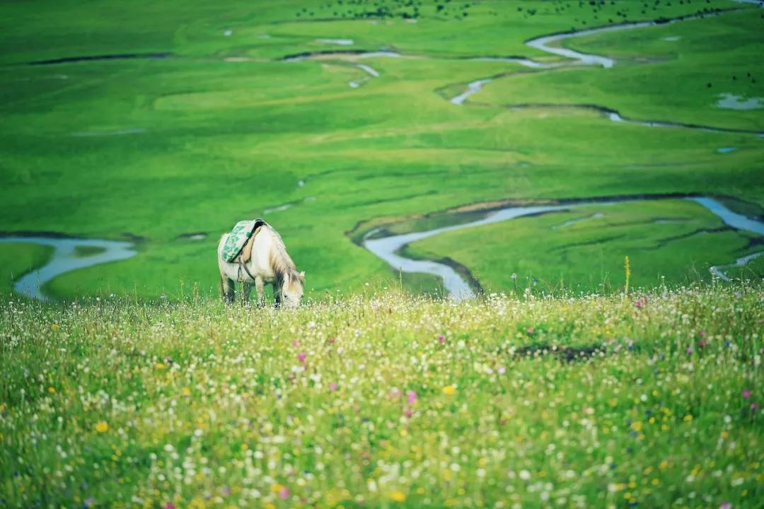 這里水草豐茂,牛羊肥壯,是一處典型的高原草地,理想的天然牧場(chǎng)。到了夏季,整個(gè)草原碧綠如茵,鮮花盛開,繁花似錦,牛羊遍野。