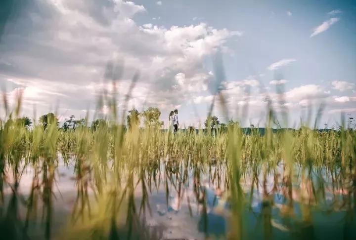 攝影講究的就是創(chuàng)意。之前看到過一張婚紗攝影照,這位攝影師使用的就是低角度拍攝,將水面作為前景,并讓鏡頭與水面保持一致,保留大場景的同時,卻也很好地突出了主體。