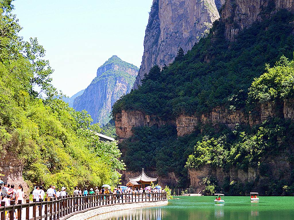 沿水路游覽七色相交、如玉如碧、如夢(mèng)如幻、眼入湖底13米的高山平湖—【通天湖】【神龜湖】;高170多米,長(zhǎng)200多米的華夏第一屏—【石屏山】;林中小島、獼猴成群的太行第一寨—【獼猴寨】(注意安全,不要逗猴);如玉如瀑—【三疊瀑】;深山情趣多—【戲水譚】;疑似長(zhǎng)河落九天—【天河壺口】;一簾幽夢(mèng)—【水簾洞】;在千尺澗碼頭集合,船游“北方小三峽”之稱的【千尺澗】乘坐千尺澗高峽平湖游船游覽峽谷(游覽時(shí)間約2小時(shí)):千尺澗最深處200多米,最寬40米,最窄處7米。