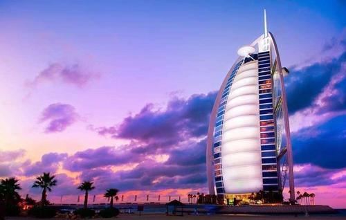 后乘車前往朱美拉公共沙灘,車觀【朱美拉清真寺】,【迪拜酋長皇宮】(外觀),外觀世界最著名的【七星級(jí)帆船酒店】,奢華的代名詞;