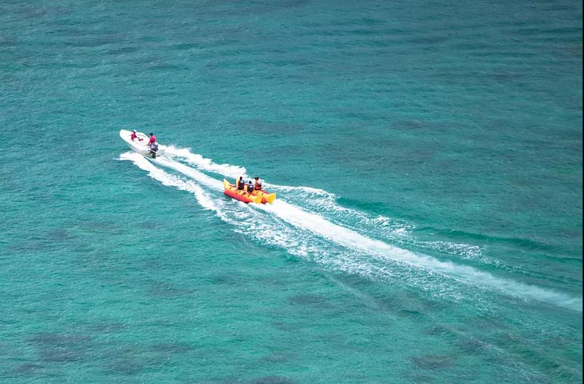 站在沙灘上,浩渺而又純凈的藍不斷涌來,依深淺的不同呈現(xiàn)出黃、綠、淺藍、深藍幾種顏色,仿佛畫上的風(fēng)景,島上可參加潛水等海上娛樂項目(海上娛樂項目費用不含)或游泳拍照;