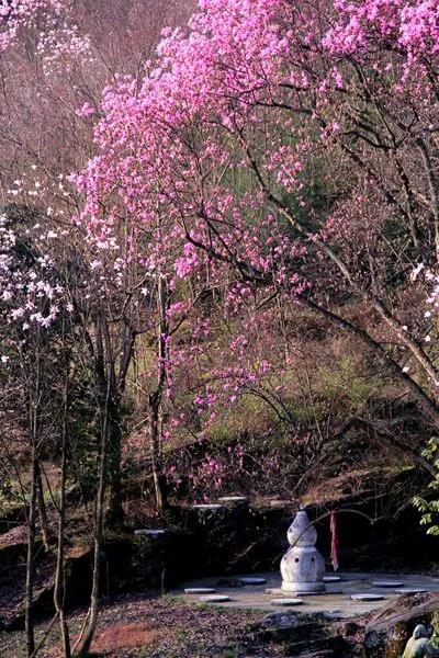 2.在漢中的油菜花競相開放的時(shí)候,北川藥王谷的野生辛夷花也是風(fēng)華正茂的時(shí)候。漫山遍野的粉色花朵爭奇斗艷,蔚為壯觀。