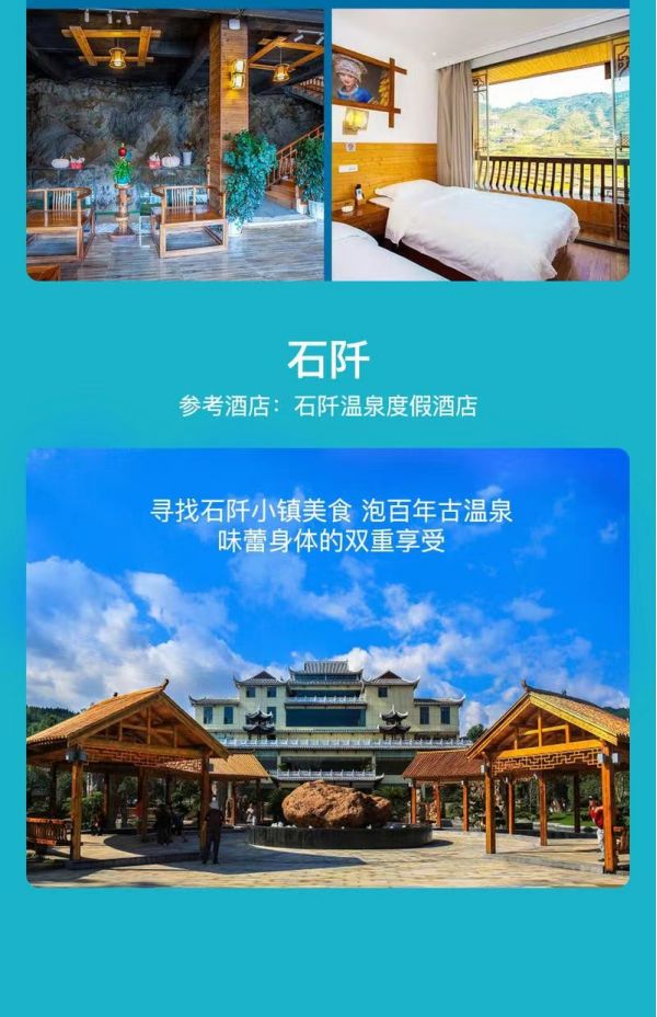 驅(qū)車前往石阡溫泉古鎮(zhèn),享受下石阡古溫泉(不限次),放松下身體,洗去疲憊。Tips:泡溫泉需自帶泳衣,酒店附近也有賣泳衣的地方,請謹(jǐn)慎選購。