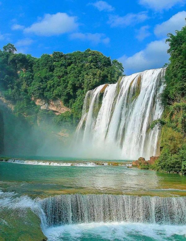 陡坡塘瀑布(83版西游記片尾曲取景之處)位于黃果樹瀑布上游1公里處,是一個(gè)高21米,寬達(dá)105米的天然壩型瀑布,也是黃果樹瀑布群中zui寬的瀑布。洪水時(shí)節(jié),瀑布會發(fā)出汽笛叫聲,俗稱“吼瀑。