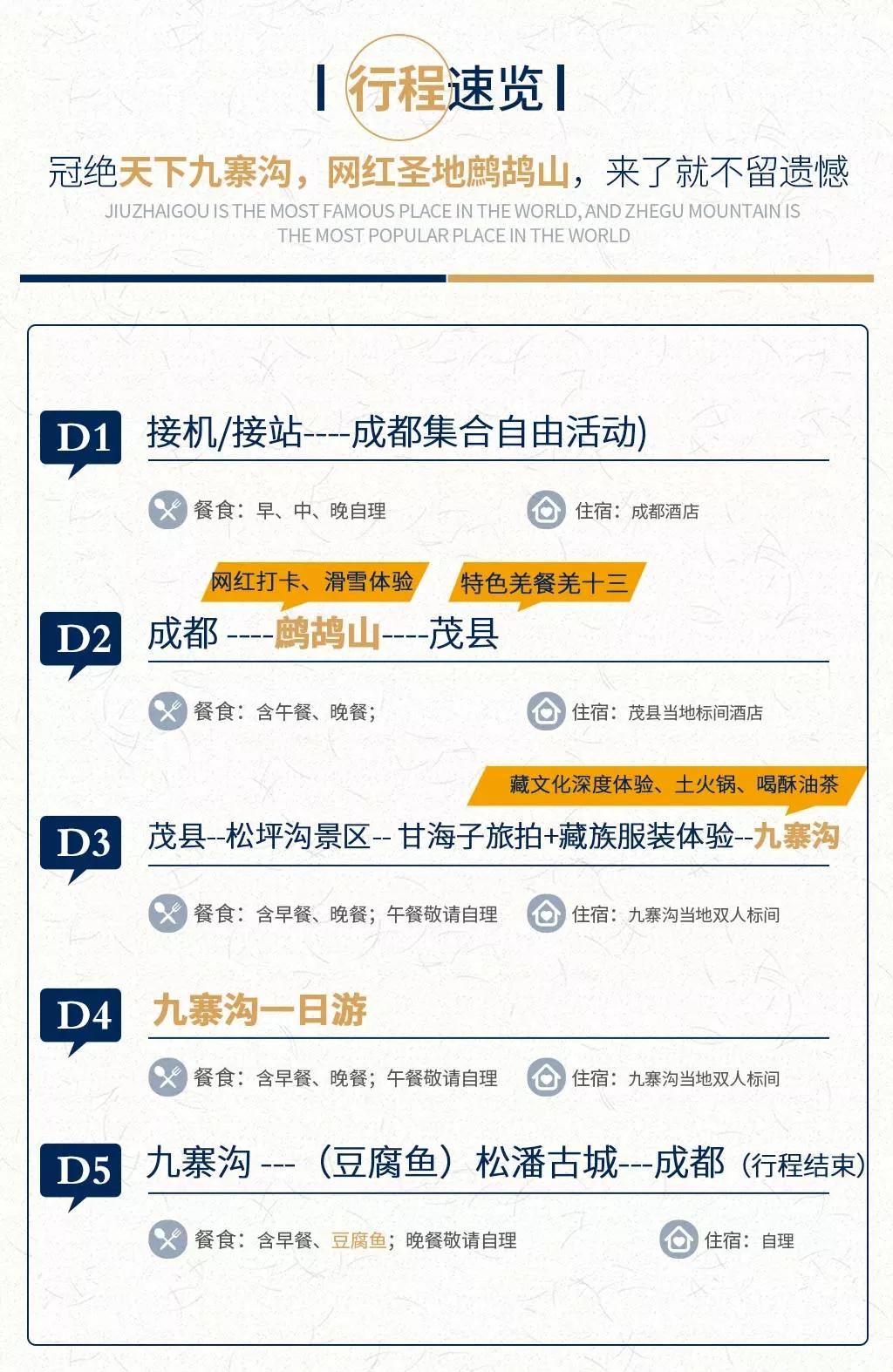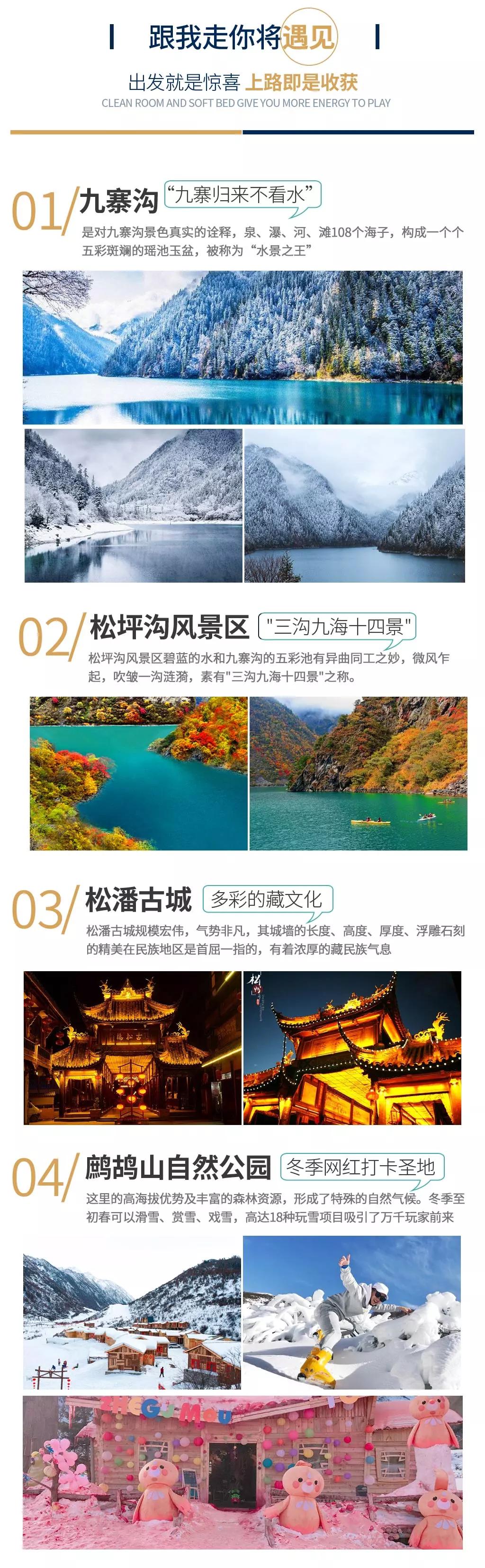 3、九寨溝面積較大游客需求不一,因此主要以游客自助游形式游覽,如無導(dǎo)游陪同望您諒解。游覽開始前導(dǎo)游會與您約定好集合時間,請務(wù)必按時到達(dá)指定地點,避免耽誤大家接下來的行程;