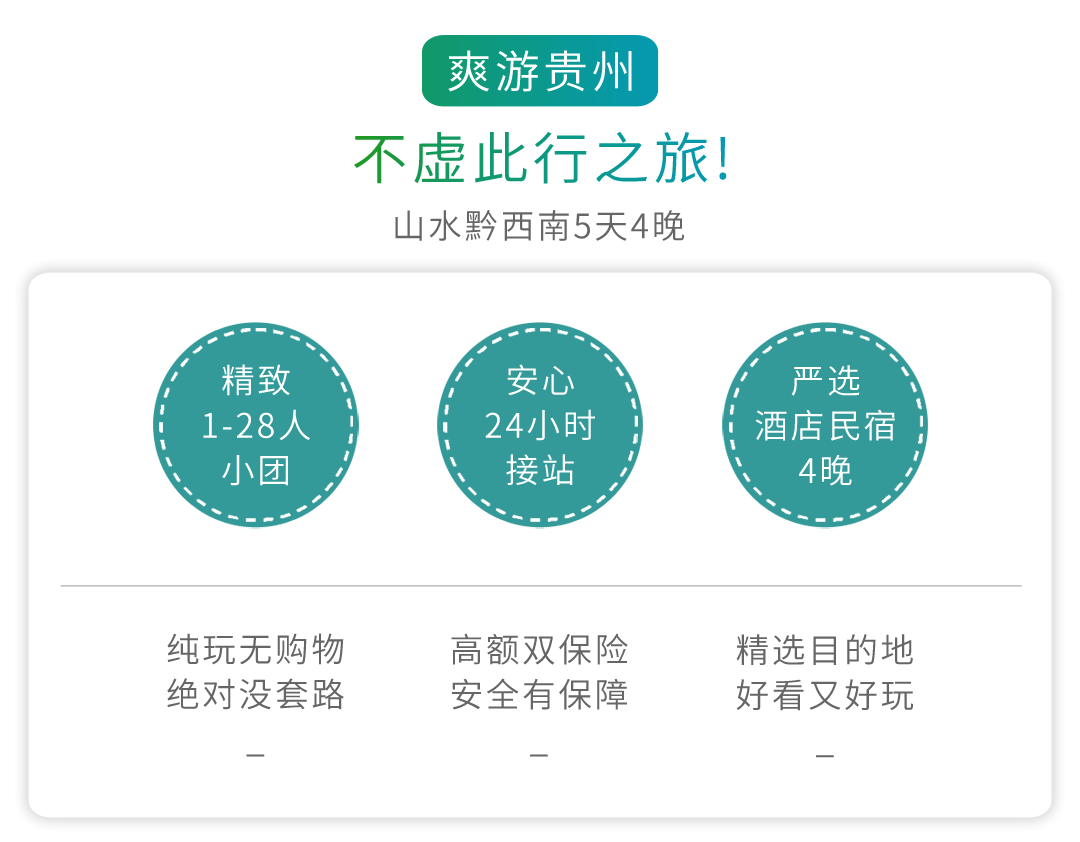 全天貴陽集合,我們貼心贈送24小時接機(jī)接站服務(wù)(貴陽龍洞堡機(jī)場、貴陽北站、貴陽火車站)。若時間合適,可自愿參加我們贈送項目--【老貴陽City Walk 半日游】