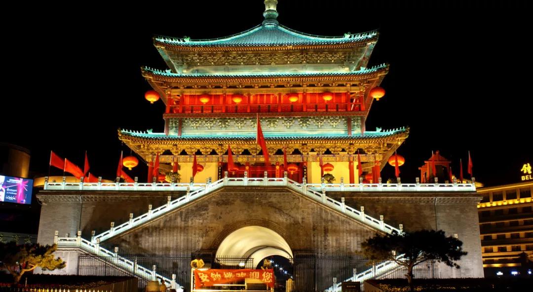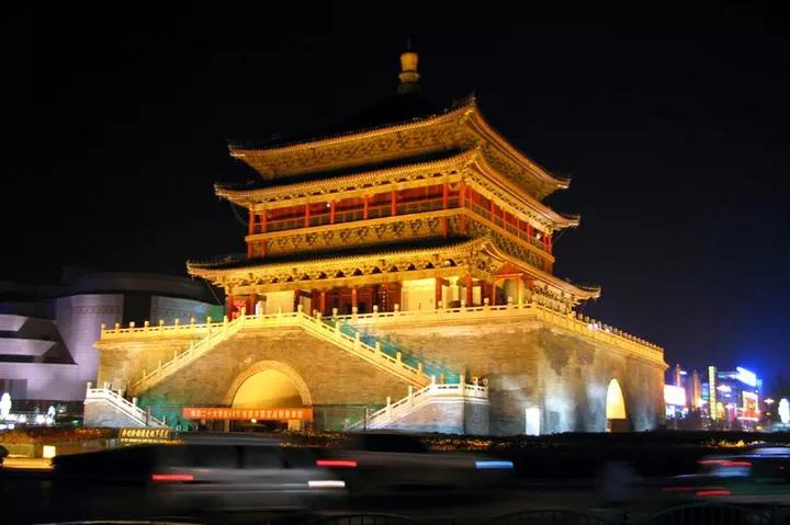 西安鐘樓始建于明洪武十七年,是一座重檐三滴水式四角攢尖頂?shù)拈w樓式建筑,面積1377.64平方米,建在用青磚、白灰砌成的方形基座上。西安鼓樓始建于明洪武十三年建于高大的長方形臺(tái)基之上,臺(tái)基下辟有高和寬均為6米的南北向券洞。