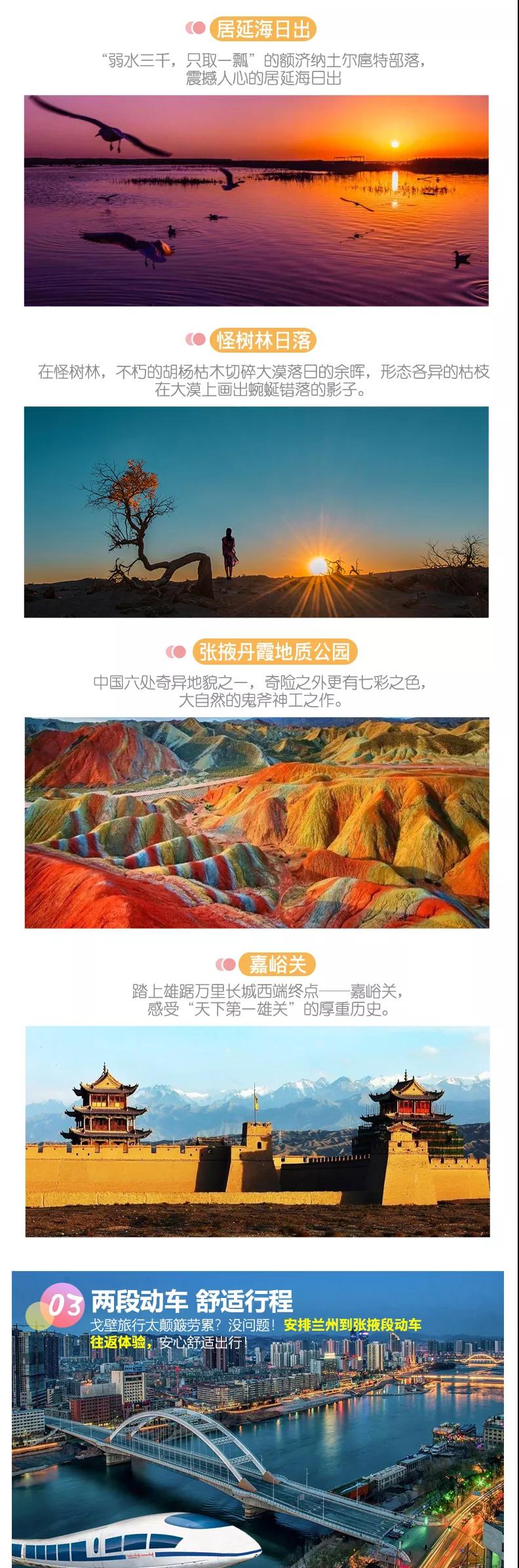 交通:當(dāng)?shù)芈糜伟褪浚ūWC一人一正座位,車(chē)型大小根據(jù)實(shí)際人數(shù)安排),且由駕駛經(jīng)驗(yàn)豐富的司機(jī)為您的出行保駕護(hù)航;蘭州到張掖、張掖到蘭州往返動(dòng)車(chē)費(fèi)用【參考車(chē)次D2748(12:22-16:49)、D2674 (13:05-17:41)、D2752 (13:31-17:58)、D56(15:03-19:45) 】。