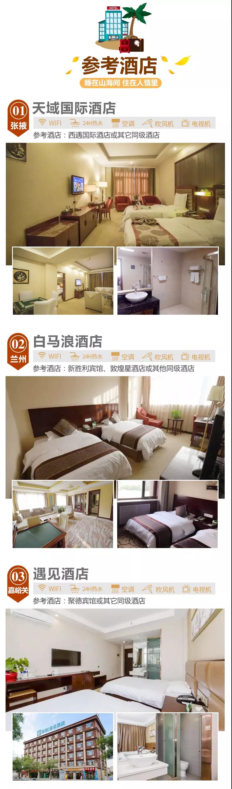 蘭州:白馬浪酒店、新勝利賓館、敦煌星酒店或其他同級(jí)酒店