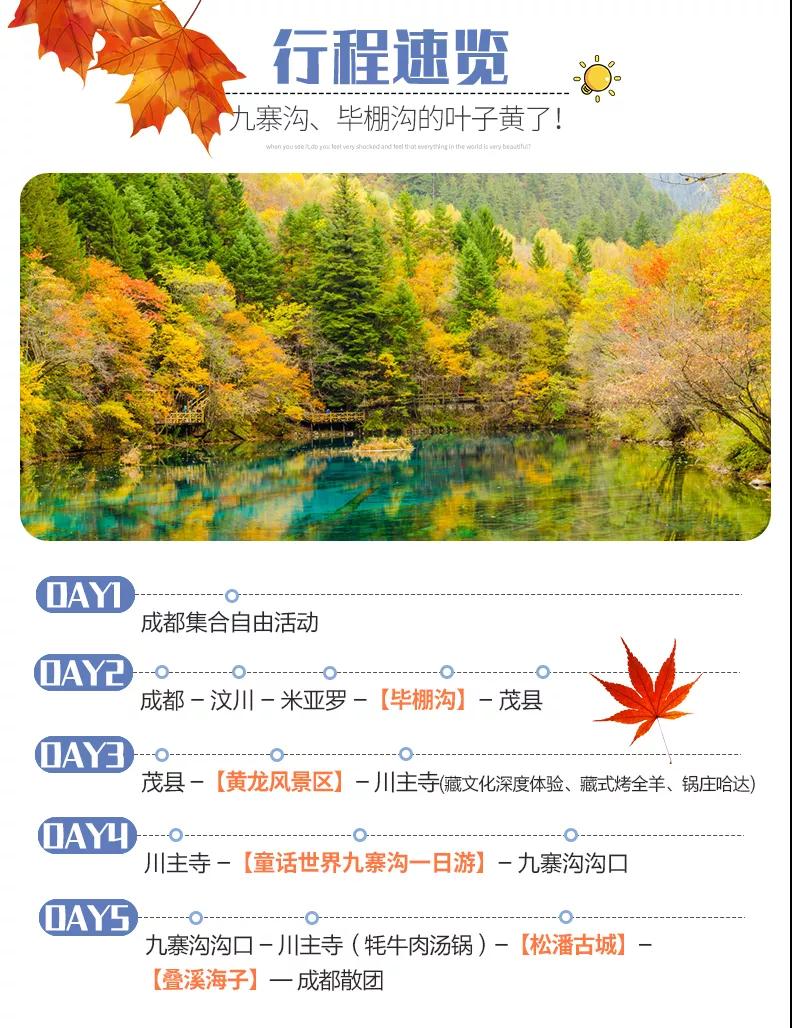 含全程九寨溝門票、黃龍風(fēng)景區(qū)門票、畢棚溝門票。