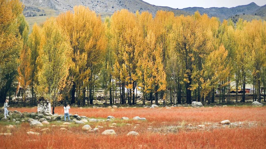 隨后沿318國(guó)道一路向東,翻卡子拉山、剪子灣山、經(jīng)雅江縣城后,過(guò)高爾寺山隧道,抵達(dá)【新都橋鎮(zhèn)】,新都橋鎮(zhèn)地處在公路318國(guó)道南、北線分叉路口,如遇天氣晴好,這里是一片如詩(shī)如畫的世外桃源。神奇的光線,無(wú)垠的草原,彎彎的小溪,金黃的柏楊,山巒連綿起伏,藏寨散落其間,牛羊安詳?shù)爻圆荨ㄎ鞯钠皆L(fēng)光美麗地綻放。