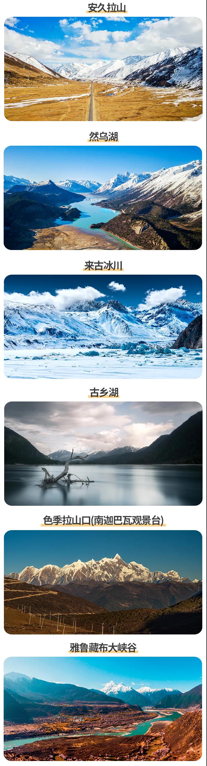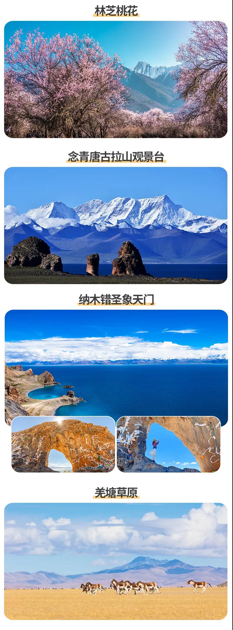 林芝桃花+金川梨花+南迦巴瓦峰+理塘+然烏湖+來(lái)古冰川+納木錯(cuò)圣象天門+怒江72拐+羌塘草原+雅魯藏布大峽谷