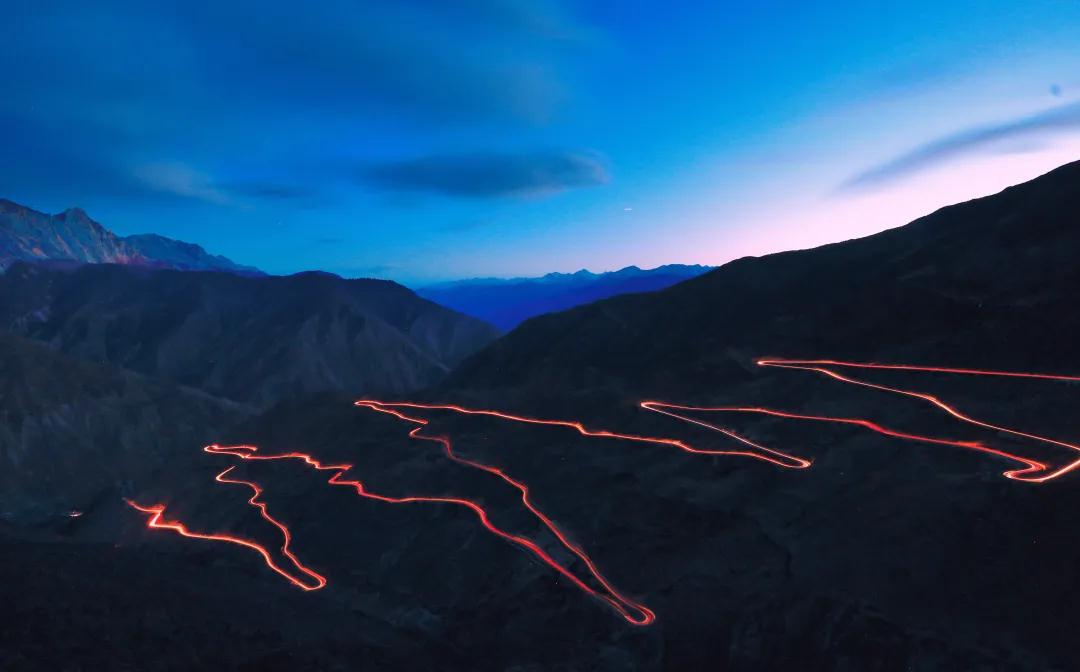由于地勢(shì)的原因,在邦達(dá)的業(yè)拉山(埡口海拔4658米),形成了著名的【怒江72道拐】,也稱“九十九道回頭彎”、業(yè)拉山“108拐”。從業(yè)拉山口,一直下到海拔不到3000米的怒江邊,高度直降近2000米。山路曲折盤旋,一彎又一彎,一圈又一圈,無(wú)限循環(huán),轉(zhuǎn)到后來(lái)你根本不可能記得它轉(zhuǎn)了多少圈。如此密集的回頭彎,被稱為川藏線上拐彎最多的路段,也是“中國(guó)十大險(xiǎn)峻山路”之一。
