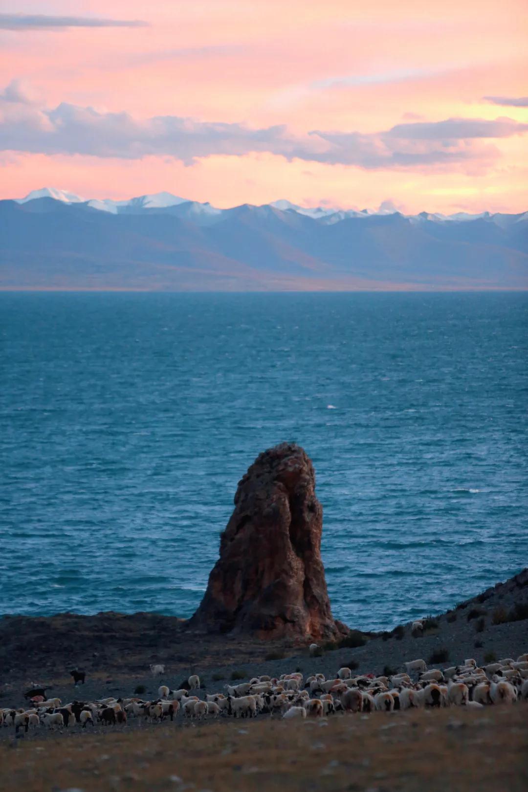 想看日出的朋友們今天就得起個(gè)早了哦~如果說(shuō)納木措的日落是絢爛的,那它的日出就是寧?kù)o而壯觀的。頭頂泛著魚(yú)肚白,然后當(dāng)水天相接的地方閃現(xiàn)出第一縷光,金光便開(kāi)始爭(zhēng)相恐后地從深淵中躍出來(lái),打破這太過(guò)沉默的晨,直到這輪旭日完全沖破云層,晨曦播撒在納木措的湖面上、山坡上、草地上,柔和的光暈照亮了整個(gè)大地。見(jiàn)證靜謐如何生出熱鬧,見(jiàn)證黑夜如何誕出光明,除了壯觀,別無(wú)他言。