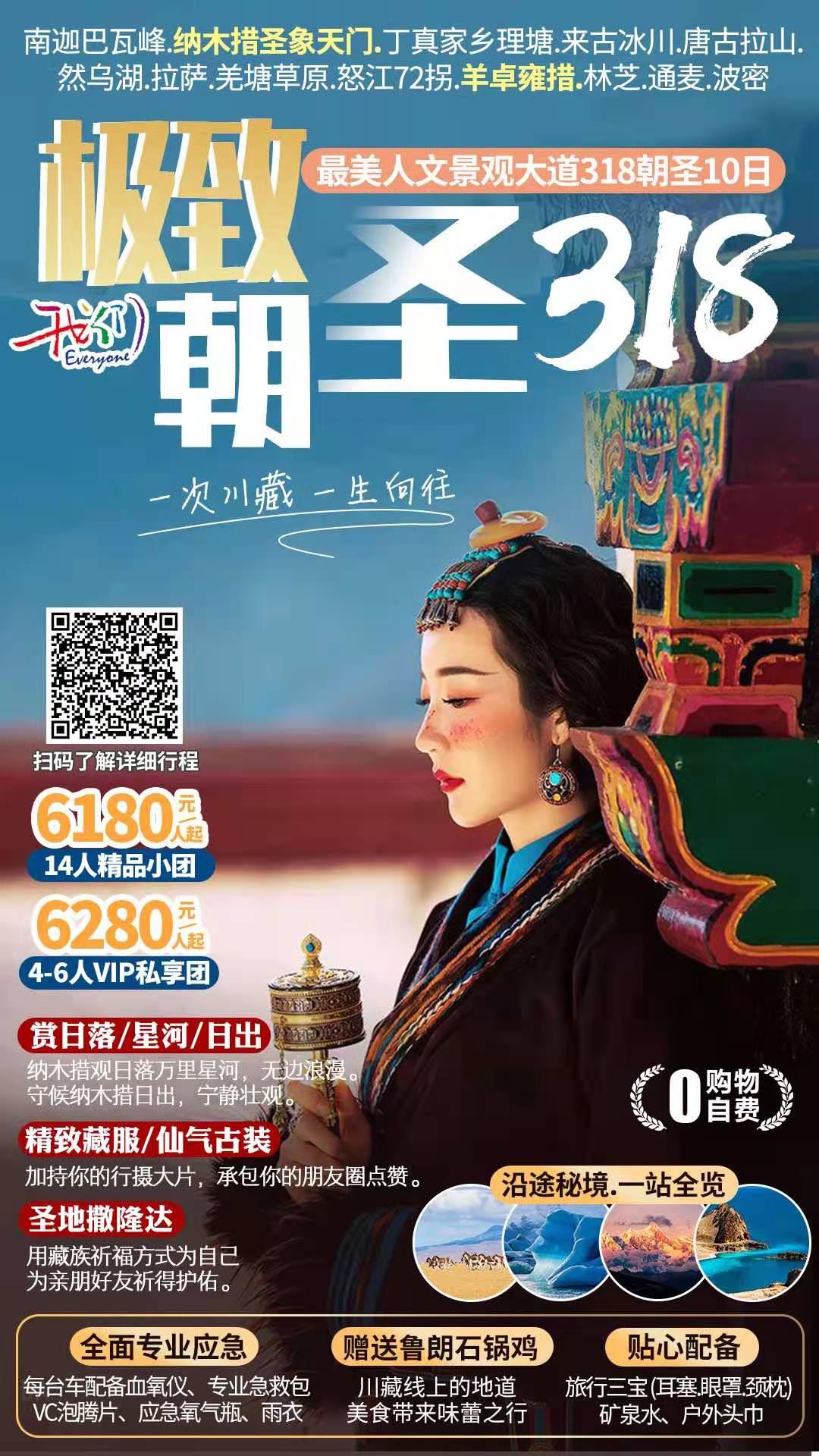 南迦巴瓦.納木措圣象天門.羊卓雍措.丁真家鄉(xiāng)理塘.來(lái)古冰川.然烏湖.羌塘草原.怒江72拐 318朝圣9晚10天