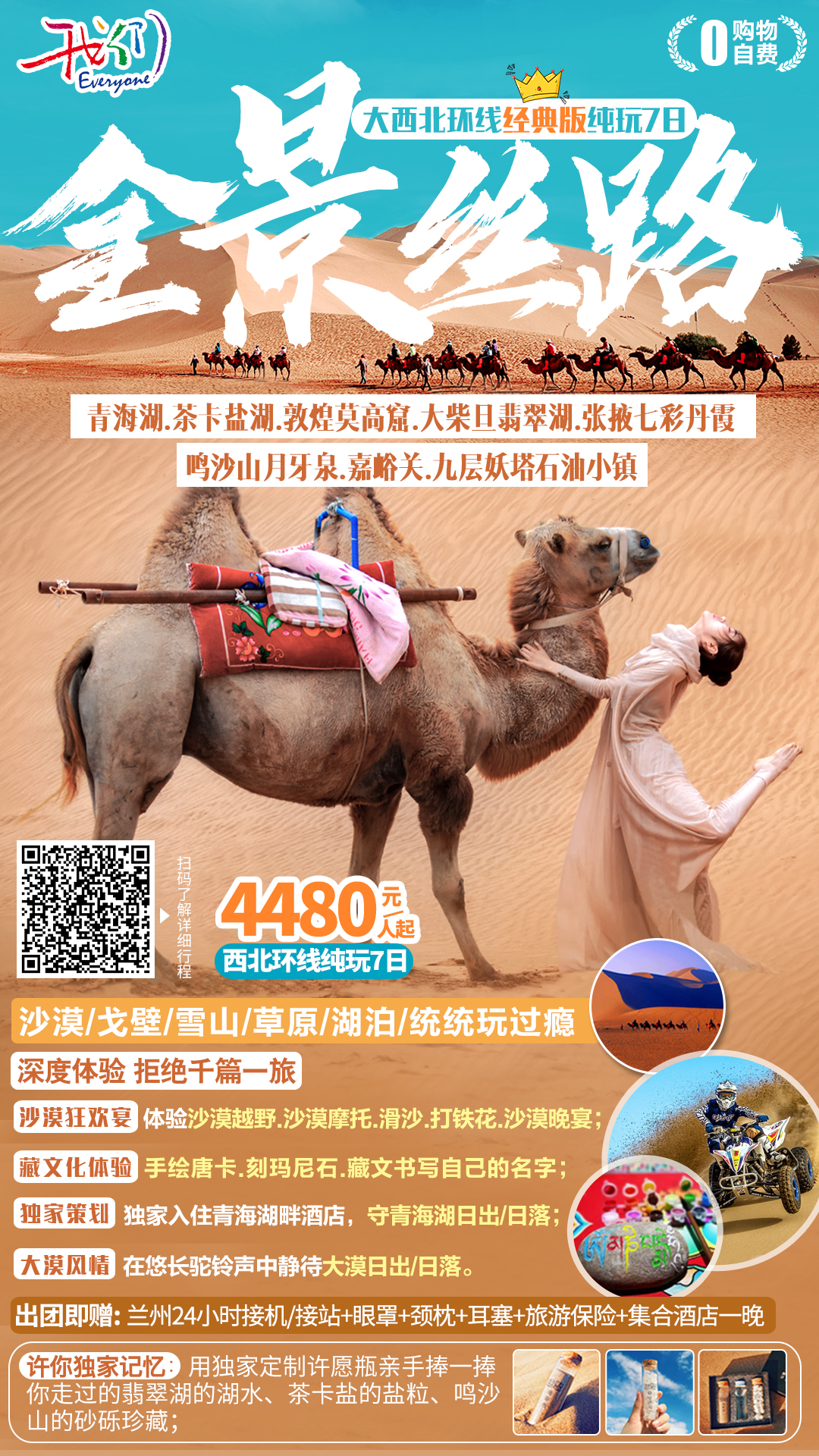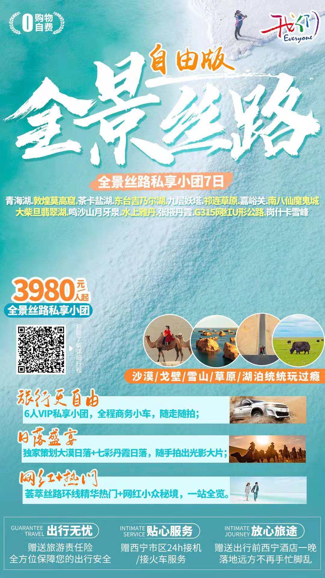 青海湖.茶卡鹽湖.莫高窟.大柴旦翡翠湖.張掖七彩丹霞.鳴沙山月牙泉.嘉峪關(guān).九層妖塔石油小鎮(zhèn) 經(jīng)典絲路6晚7天!