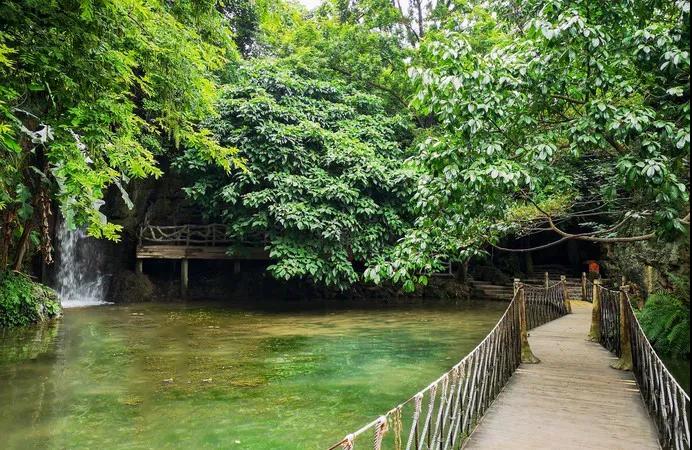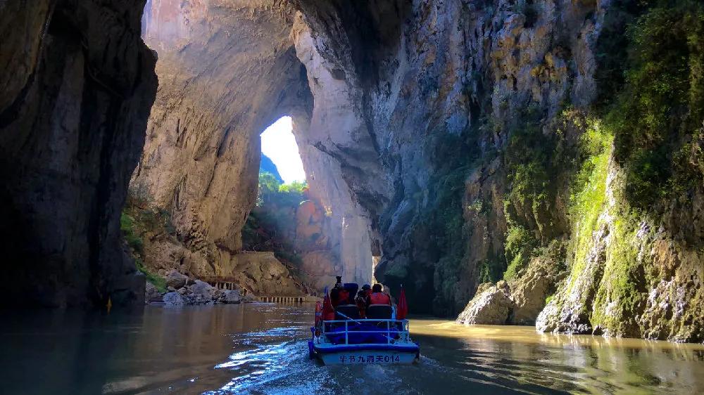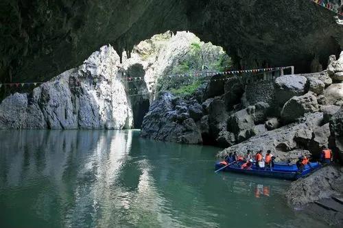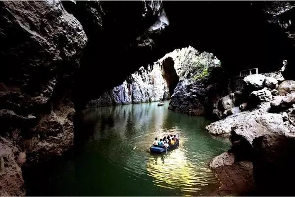 早餐后,乘車約2小時(shí)抵達(dá)【九洞天景區(qū)】(游覽時(shí)間約3-4小時(shí))景區(qū)生態(tài)景觀秀美、溝壑縱橫、植 被發(fā)育、伏流明暗交替,洞洞相連,組合成集溶洞、伏流、天窗、天坑、峽谷、天生橋、懸崖、絕壁、峰叢幽谷等為一體的雄奇瑰麗的巖溶大觀。在這一段長(zhǎng)約2公里的六沖河河道上,箱形切割頂板 多處塌陷,形成了多個(gè)形狀、大小各異的天窗、天坑,是已發(fā)現(xiàn)的天窗天坑最密集的溶洞群,是可供乘船游覽最高大的溶洞群。
