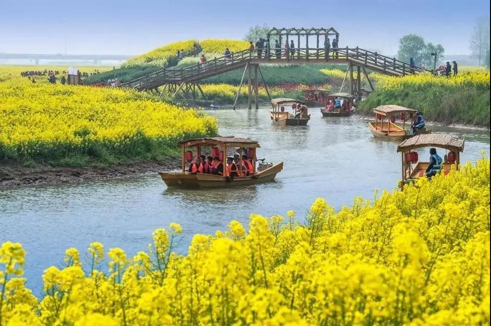 早餐后,出發(fā)前往【高郵湖上花海】位于高郵湖漫水公路北側(cè)的新民灘,依托新民灘良好的生態(tài)資源基礎(chǔ)和高郵湖水環(huán)境,主要以油菜花勝境、天然馬場(chǎng)、露營(yíng)基地、休閑運(yùn)動(dòng)為重點(diǎn)。2000多畝的油菜花競(jìng)相綻放,與高郵湖的湖灘濕地、鄉(xiāng)間公路交織在一起,從空中俯瞰,再現(xiàn)“水天一色、煙波浩渺”的壯美自然景觀,吸引游客徜徉花海,感受春天美麗風(fēng)光。金燦燦的油菜花與碧波湖水相互映襯,構(gòu)成一幅‘湖上花?!拿利惍嬀恚慰涂梢葬溽嘟鹕ê#蕾p千畝菜花、湖上帆船的秀美景色。水流舒緩,碧波澄澈,流金溢彩,花色醉人。游覽結(jié)束后返回溫馨家園。