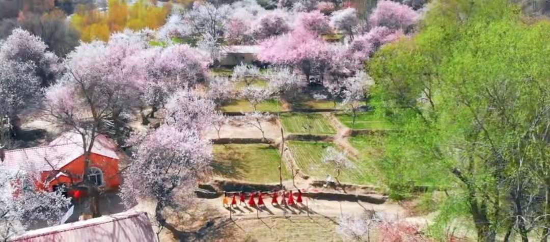 五個(gè)月的漫漫長(zhǎng)冬過后帕米爾高原的雪融化了,冰川下的杏花開了……