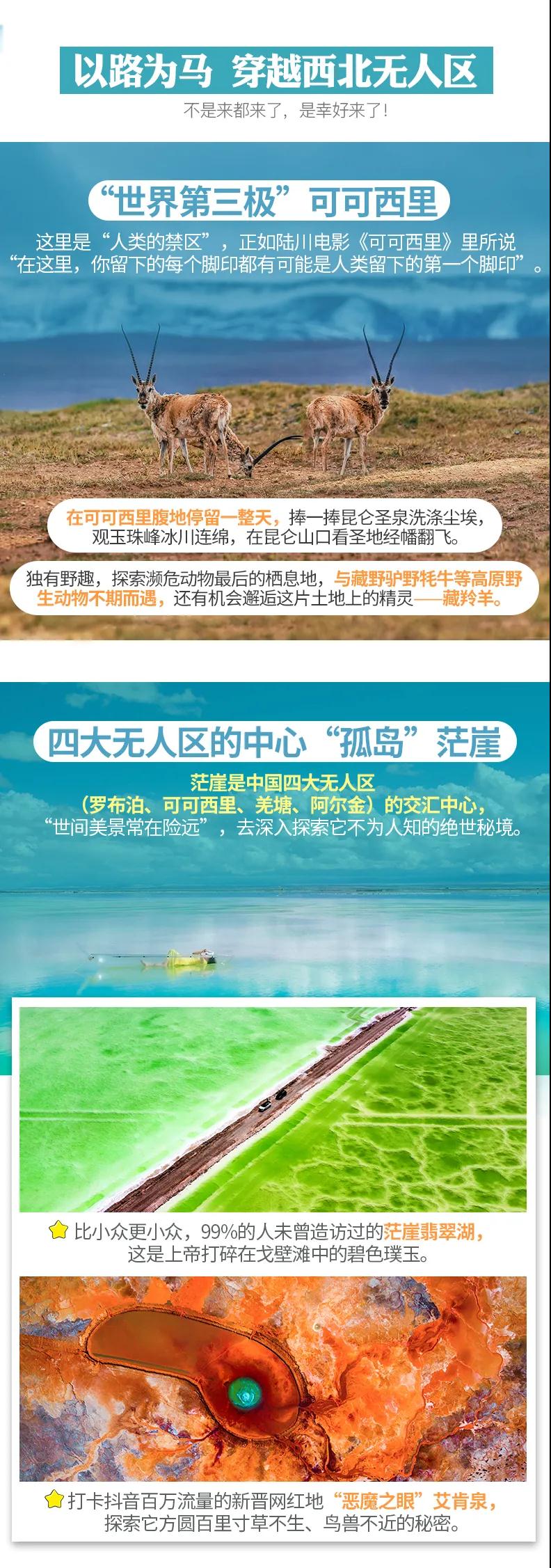 (4)茫崖翡翠湖、東/西臺(tái)吉乃爾湖、艾肯泉為小眾未開(kāi)發(fā)景點(diǎn),往年不設(shè)門(mén)票,若今年收費(fèi)門(mén)票或環(huán)保費(fèi)由游客自理。