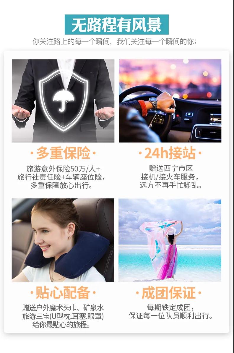 贈(zèng)送:贈(zèng)送戶外魔術(shù)頭巾、旅游三寶(頸枕耳塞眼罩)、礦泉水;西寧市區(qū)24小時(shí)接機(jī)/接火車(chē)服務(wù)。(贈(zèng)送項(xiàng)目不用費(fèi)用不退)