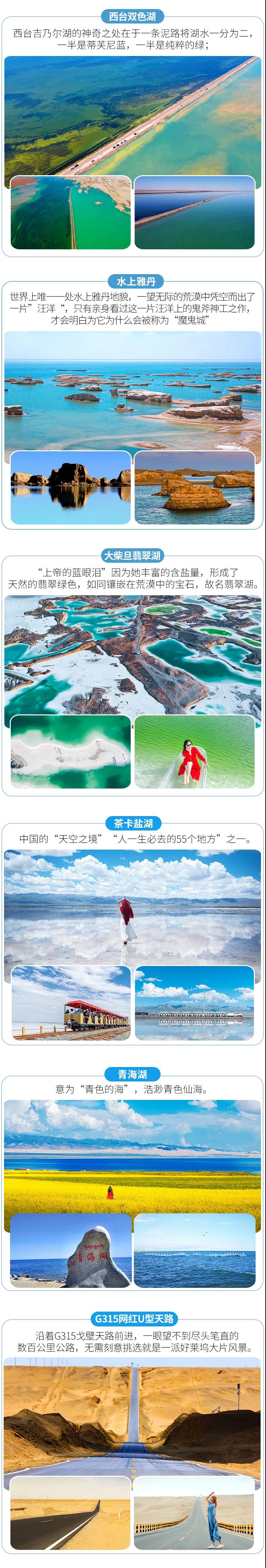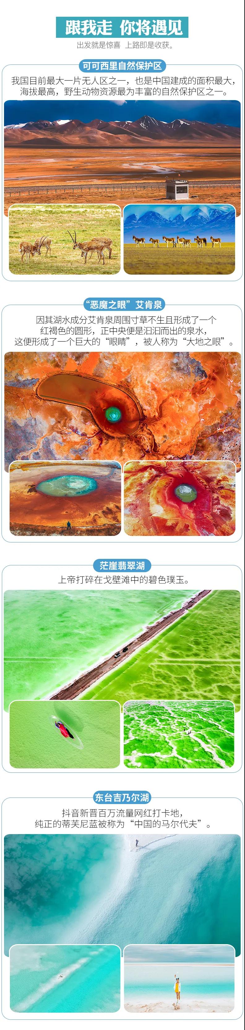 可可西里+艾肯泉+青海湖+茶卡鹽湖+茫崖+大柴旦翡翠湖+西臺(tái)雙色湖+東臺(tái)吉乃爾湖+水上雅丹+G315天路