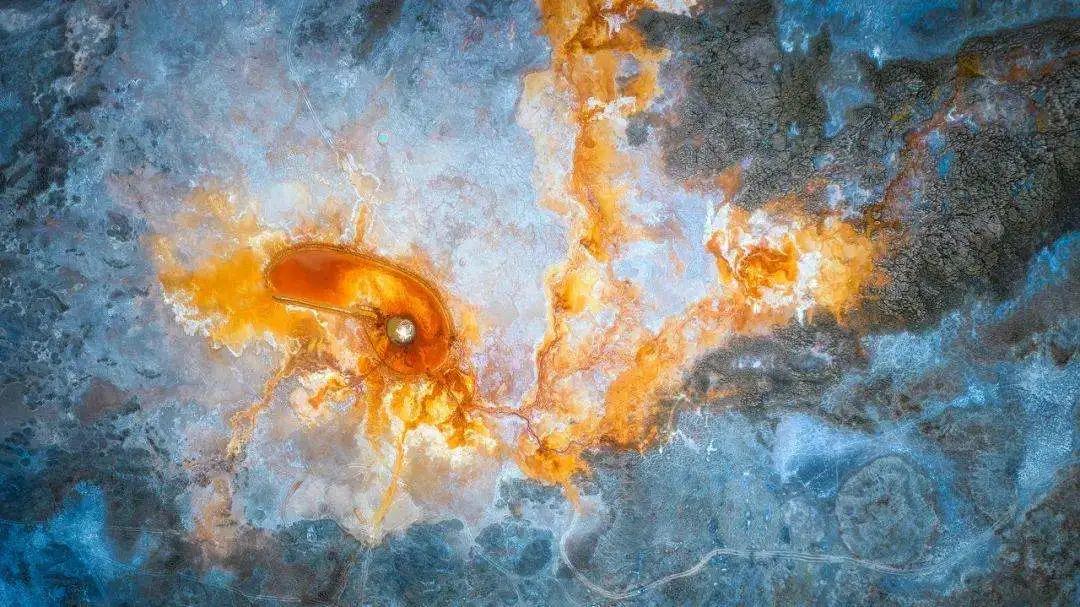 隨后我們前往阿拉爾草原深處去探索一方汩汩噴涌了上千年的地?zé)釃娙?strong>“惡魔之眼”艾肯泉】,方圓百里,草木不生,鳥(niǎo)獸不近。“艾肯”在蒙語(yǔ)中意為“可怕”,而“艾肯泉”在蒙語(yǔ)中又意為“源頭”,因其湖水成分艾肯泉周?chē)绮莶簧倚纬闪艘粋€(gè)紅褐色的圓形,正中央便是汩汩而出的泉水,這便形成了一個(gè)巨大的“眼睛”,被人稱(chēng)為“大地之眼”。從空中俯瞰航拍,這巨大的眼睛脈絡(luò)清晰,栩栩如生,在它周?chē)c(diǎn)綴著許多青色的小泉眼,神秘而震撼;除了其令人驚奇的血色眼睛造型,艾肯泉還有神奇的“喊泉”屬性,據(jù)說(shuō)站在岸邊朝它大喊,或者是在岸邊跺跺腳,噴泉口的水流量就會(huì)加大,會(huì)噴涌得更高。