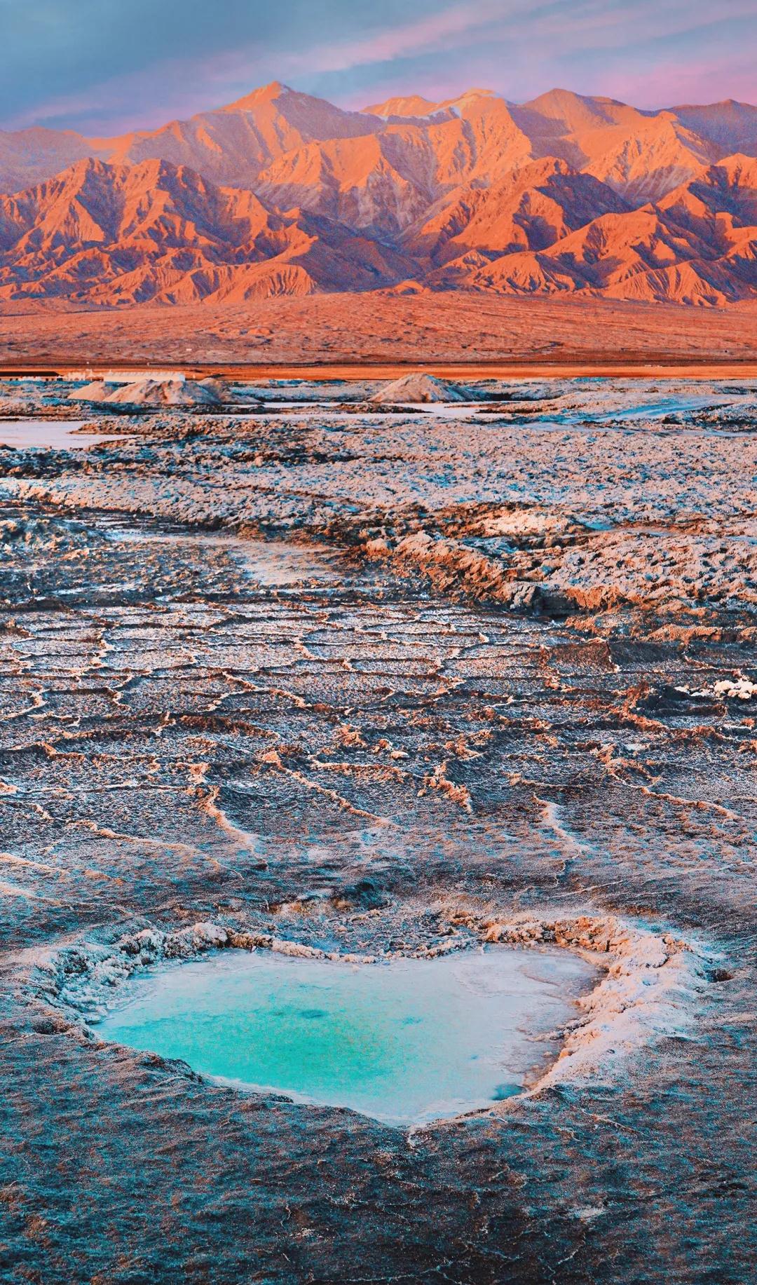 早上用過(guò)早餐后我們前往“上帝的藍(lán)眼淚”【大柴旦翡翠湖】,因?yàn)樗S富的含鹽量,形成了天然的翡翠綠色,如同鑲嵌在荒漠中的寶石,故名翡翠湖。由于鹽池所含礦物質(zhì)不同,翡翠湖還會(huì)隨著不同時(shí)間段太陽(yáng)光照的變化而變化,時(shí)而碧綠如翡翠、時(shí)而澄澈蔚藍(lán)。翡翠湖目前仍是一處尚未開(kāi)發(fā)的原始風(fēng)景地,在這里你能細(xì)細(xì)品味遠(yuǎn)離喧囂的寧?kù)o舒適、空曠荒蕪,隨意一坐,自有意境,別有一番風(fēng)味。