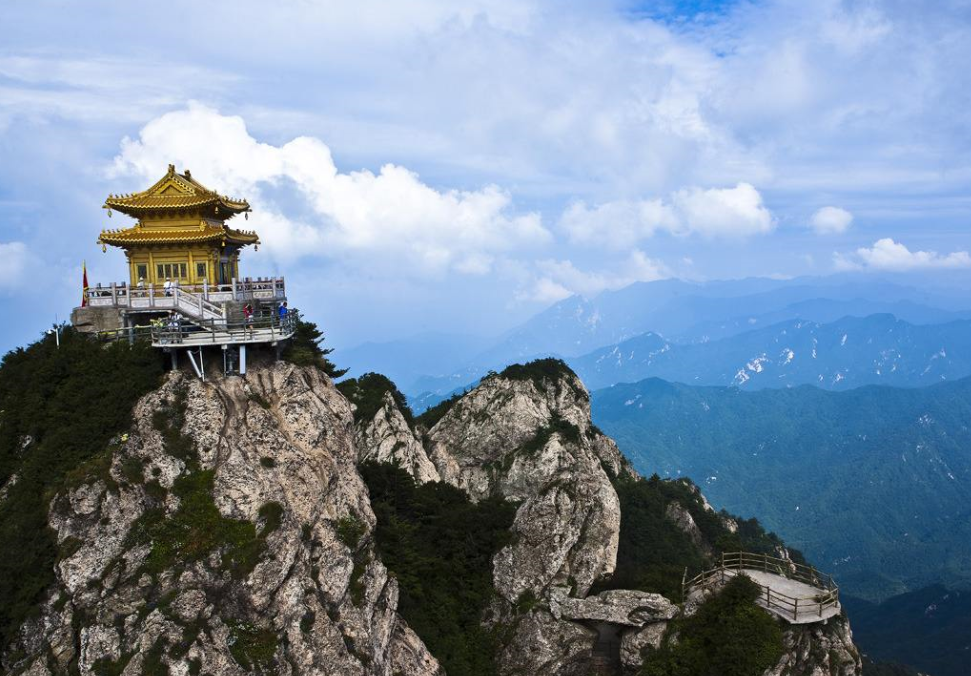 老君山古稱景室山,因老子李耳歸隱修煉于此而得名。老君山海拔2217米,是八百里伏牛山主峰,山勢雄偉,群峰競秀,峰林洞澗,千姿百態(tài)。山頂?shù)烙^歷史悠久,道教文化源遠(yuǎn)流長,與武當(dāng)山并稱為“南北二頂”。