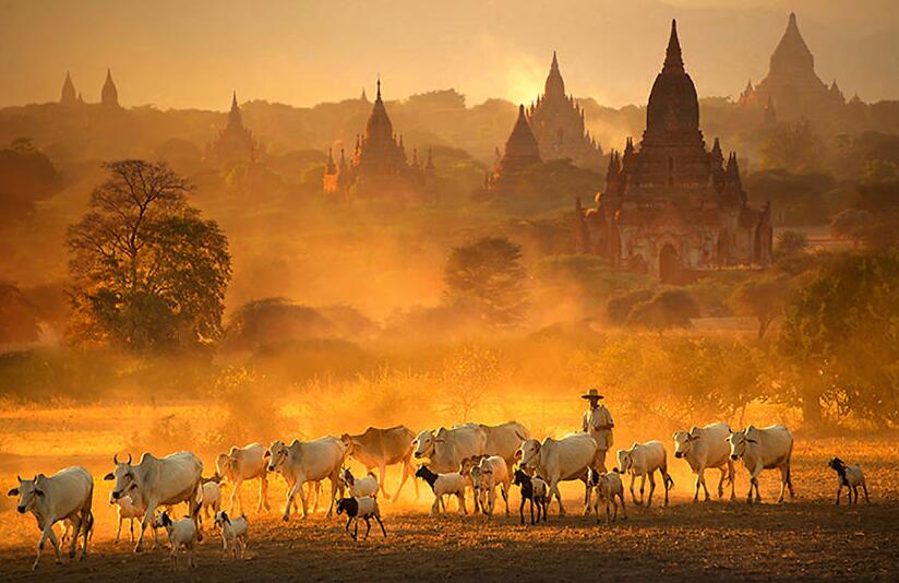 飯店內早餐后,前往國內機場,乘機飛蒲甘,大約1小時航程。古都蒲甘位于伊洛瓦底江畔,蒲甘佛塔群始建于十至十三世紀之間,非常具有藝術及考古價值。首先我們參觀蒲甘地區(qū)最古老的佛塔—【瑞喜貢塔】,之后參觀蒲甘最美的佛塔—【阿南達塔】,此塔在蒲甘眾多佛塔當中色彩最豐富,建筑形制也最富于變化,塔內四周供奉著四尊莊嚴祥和的佛主神像;接著參觀蒲甘最高的佛塔—【大冰瑜塔】,此塔有神廟之譽。下午參觀參觀蒲甘著名的手工藝品—【漆器】的制作,及精美的【柚木】雕刻品。傍晚登上靠近伊洛瓦底江邊的【日落塔】,欣賞色彩艷麗豐富的【蒲甘日落】美景。