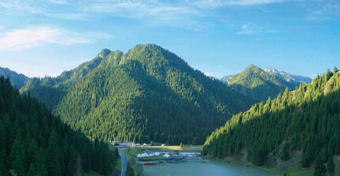 天山天池----古稱(chēng)"瑤池",是以高山湖泊為中心的自然風(fēng)景區(qū);