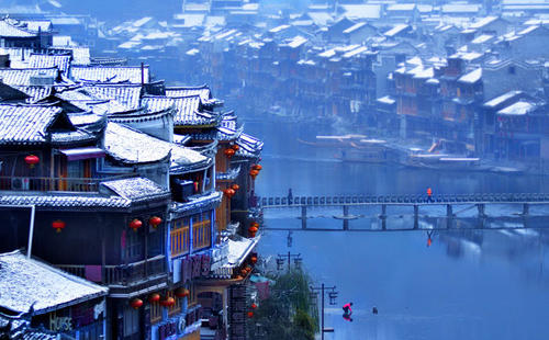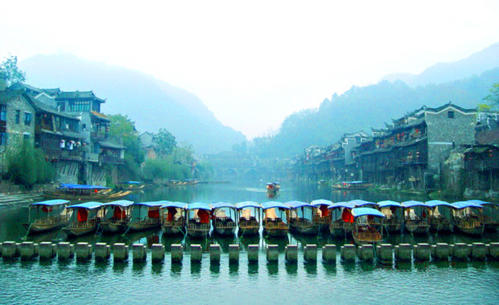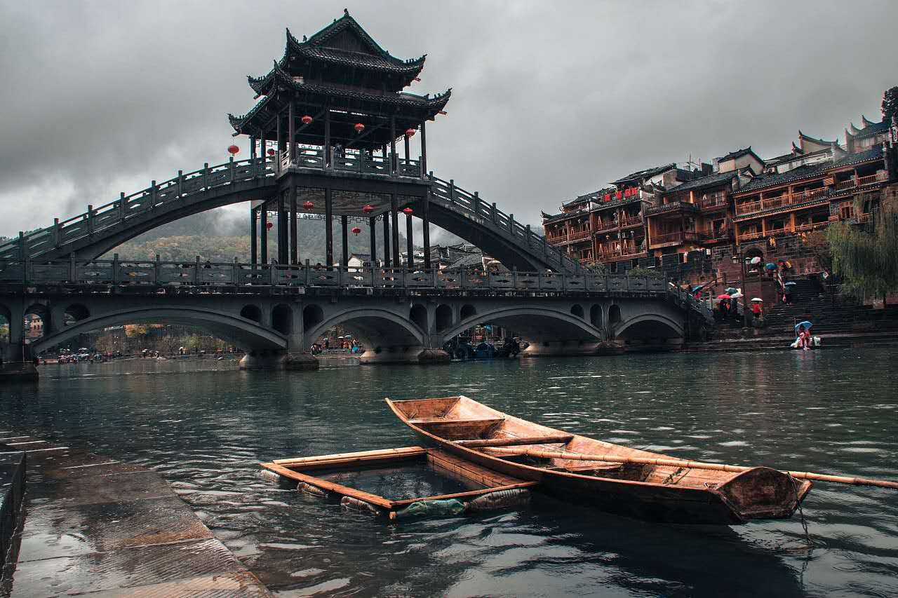沱江,古城鳳凰的母親河,依城墻緩緩流淌,哺育著世世代代的古城兒女。坐上烏篷船,聽著艄公的號子,看著兩岸已有百年歷史的土家吊腳樓,別有一番韻味。順?biāo)拢┻^虹橋,一幅江南水鄉(xiāng)的畫卷便展現(xiàn)于眼前,遠(yuǎn)離塵世的感覺悠然而生。