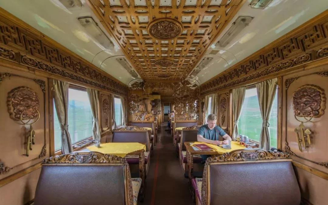 因?yàn)榱熊?chē)上的乘務(wù)員大多都是來(lái)自蒙古的美女。而且車(chē)廂里有淋浴,有廚房,很方便。