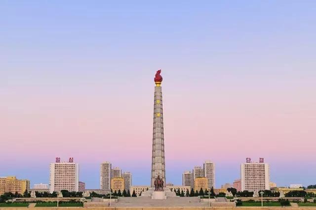 △ 主體思想塔,位于平壤市中心的大同江畔,是金日成創(chuàng)立的“主體思想”的象征。塔及其周圍附屬建筑占地總面積15萬平方米。