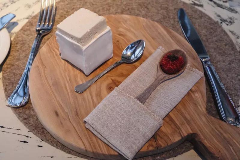 夏季特供的品嘗菜單以莓果為主,這些酸甜小玩意兒潛力無窮,能在天才廚師的手下發(fā)揮無限魅力。澆上樹莓汁的扇貝,配咸味番茄,用俄羅斯人最鐘愛的蒔蘿調(diào)味。習慣了刺身、煎烤或者擠檸檬汁的扇貝,這種味覺體驗是全新的,展現(xiàn)了海水咸味之外酷酷的酸甜味,沒想到扇貝竟然還可以這樣玩, 焦糖蘋果泥配天鵝肝來自11世紀的古老甜品,必須要加一粒森林深處的刺莓才算完整。侍者帥氣地拿起火槍,表演了一場噴火秀,“女士,現(xiàn)在您可以享用了?!?nbsp;果泥采用Antonovka蘋果制成,香氣豐富,天鵝肝微微發(fā)酵過,但保持低溫,在小方盒子里能同時吃到冷和熱、還有酸甜咸等多種風味的交雜。