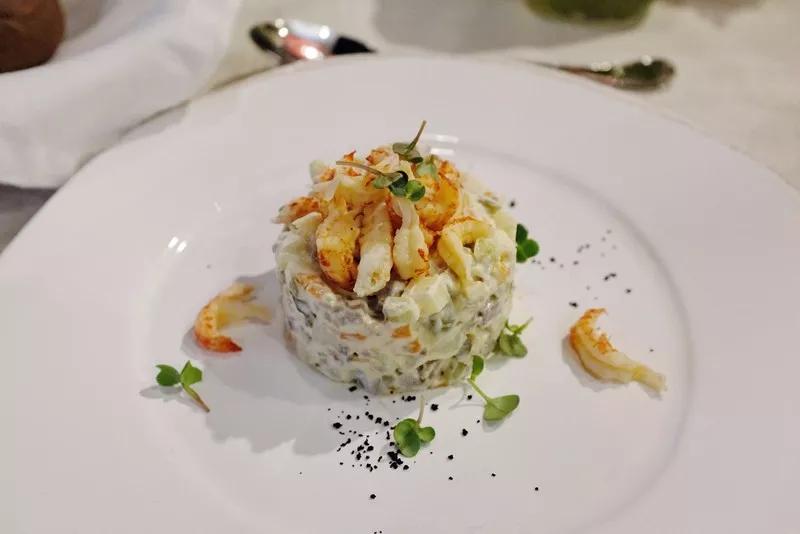 一頓完整的俄式料理,構(gòu)成上跟西餐差不多,包括前菜(沙拉)、湯、主菜、甜品等,菜是一盤盤上桌。大家習慣于認為這種用餐順序和餐桌禮儀是純法式的,事實上,直到19世紀初,主流的法式服務就像中餐一樣,所有的菜式一齊上桌。直到后來,沙皇俄國駐巴黎大使極力推廣一盤盤上菜的俄式服務,希望料理在最美味的狀態(tài)下提供給顧客,舊的法式服務才被淘汰,甚至連帶給法國料理帶來了一次革新。事實上,俄式服務才是西餐儀式感的鼻祖。
