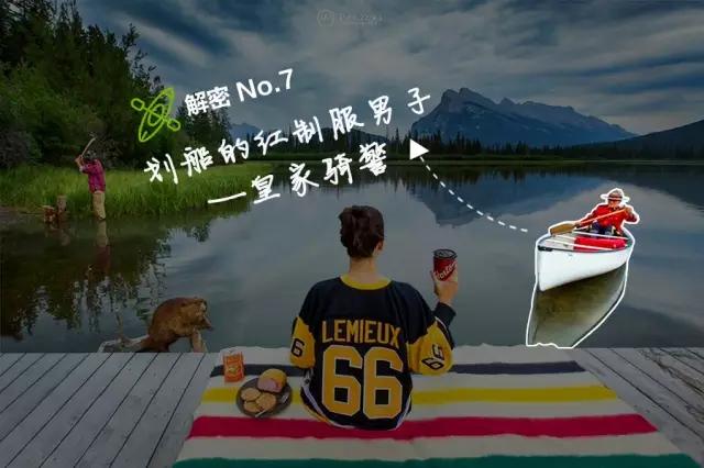 湖面上有一位身著紅色帥氣制服在湖上劃船的男子,他是誰呢?原來是加拿大國家象征之一:皇家騎警(RCMP)。他表達(dá)出了加拿大人對落基山戶外探索精神最崇尚的無限崇尚。