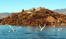 上午: 前往碼頭乘坐【摩梭豬槽船】登【里務(wù)比島】參觀【里務(wù)比寺】、【土司墓】,瀘沽湖水清澈透眼,四周風(fēng)景如詩如畫,秀麗迷人,神奇的湖水隨天空色彩變化而出現(xiàn)或金紅、或蔚藍(lán)、或灰白的變化,神秘莫測,欣賞高原珍稀植物波葉海菜花、感悟“摩梭三絕”;