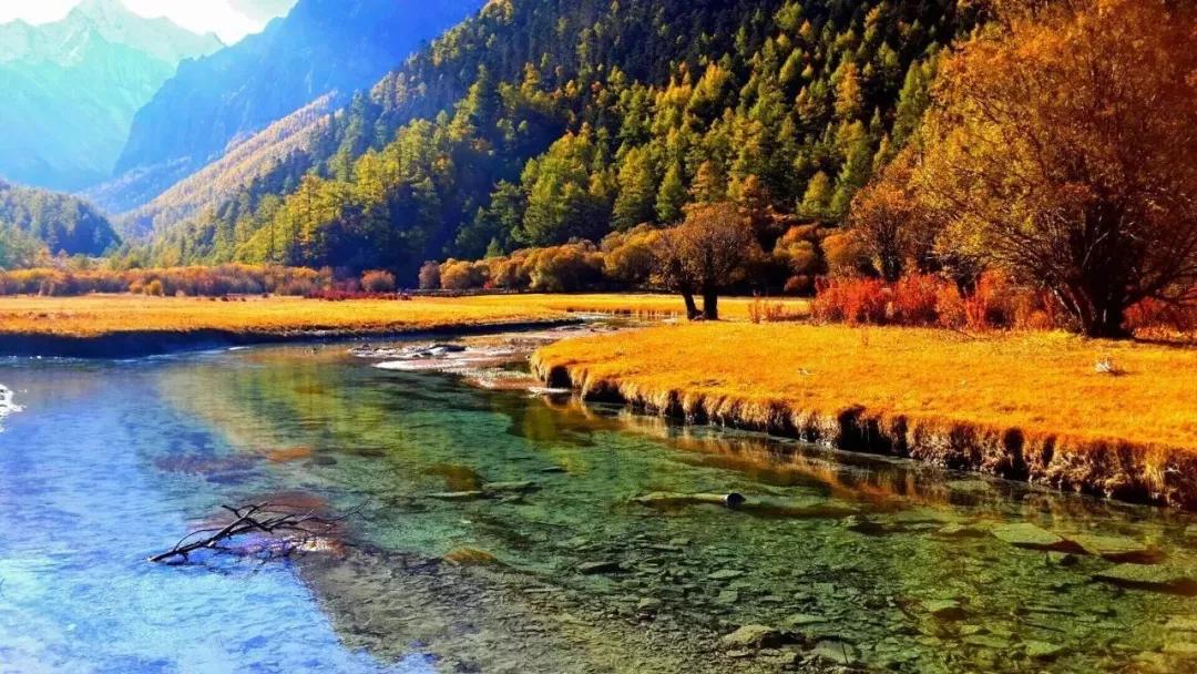 早起后,有一片如詩如畫的世外桃源,神奇的光線,無垠的草原,彎彎的小溪,金黃的柏楊,連綿起伏的山巒,錯落有致的藏寨,星星點點的牛羊……是令人神往的“光與影的世界”、“攝影家的天堂);